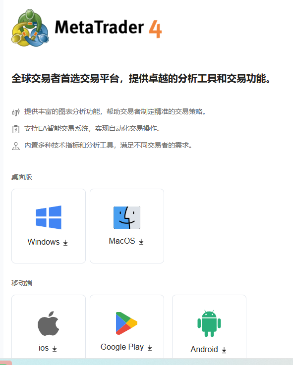 Meta Trader 4的先进交易基础设施、具有竞争力的定价和外汇代理模式执行,您便拥有了最强大的在线外汇交易组合之一。Trading通过MetaTrader 4提供外汇、期货、精选股票和现货金属差价合约。Meta Trader 4也欢迎算法交易者。使用MT4和Expert Advisors相结合让您的交易自动化。