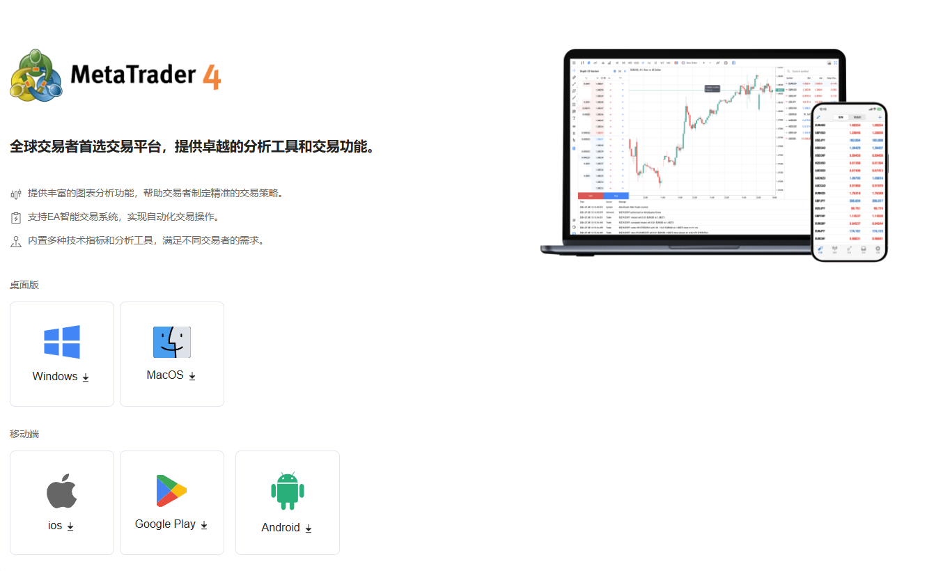 同时提供MT4移动交易平台。MT4移动交易平台可支持IOS及Android移动系统,使投资者可以随时随地通过智能手机管理交易账户。除了完善的下单交易和账户管理功能外,MT4移动交易平台还提供全面的分析选项。无论身在何方,只要有WIFI或可移动上网,投资者都可以使用MT4移动交易平台随时管控市场最新动态并进行交易,时刻掌握投资先机。